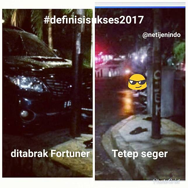 4. Definisi sukses bagi sebuah tiang listrik. Tetap tegar meski ditabrak mobil.